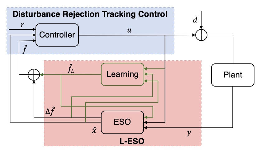 We develop a new learning-based control paradigm by combining machine learning and ESO. On one hand, the machine learning model attempts to model the disturbance. With the assistance of prior information about the disturbance, the observer is expected to achieve faster convergence in disturbance estimation. On the other hand, machine learning benefits from an additional assurance layer provided by the ESO, as any imperfections in the machine learning model can be compensated for by the ESO.